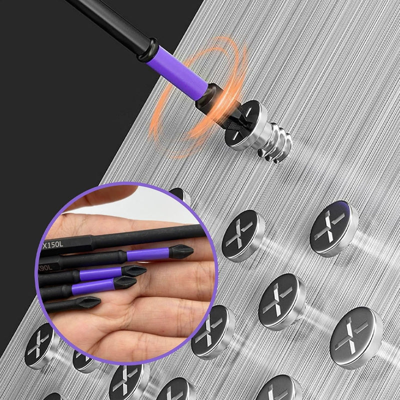 • Verbesserter Griff: Ausgestattet mit einem gezahnten Muster, das Schrauben festgreift, was eine effiziente Drehmomentübertragung ermöglicht und das Risiko des Herausdrückens reduziert.