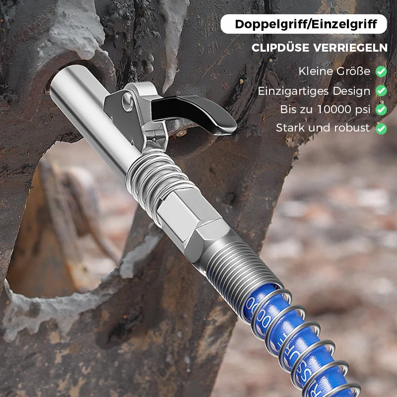 • 【Einhandbedienung】: Unser Fettpressenanschluss ist auf einen Doppelgriff, Einhandbedienung, 50 % Arbeitsersparnis und Ergonomie aufgerüstet. Auch Ecken mit eingeschränktem Arbeitsraum können mit einer Hand erreicht und verriegelt werden.